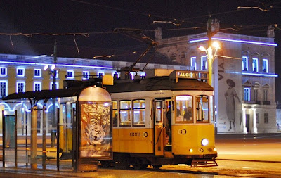 Ontem, num verdadeiro caso de sorte, consegui fotografar este eléctrico, com a iluminação de natal na pç do Comércio, sendo as primeiras do Natal de 2010.